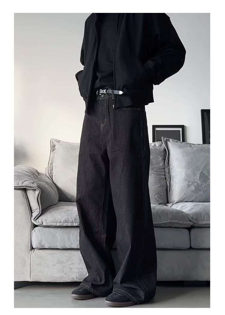 Wide-leg black denim with a relaxed silhouette that flows with every step.