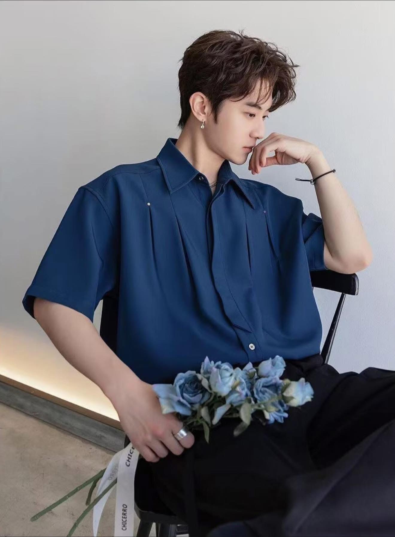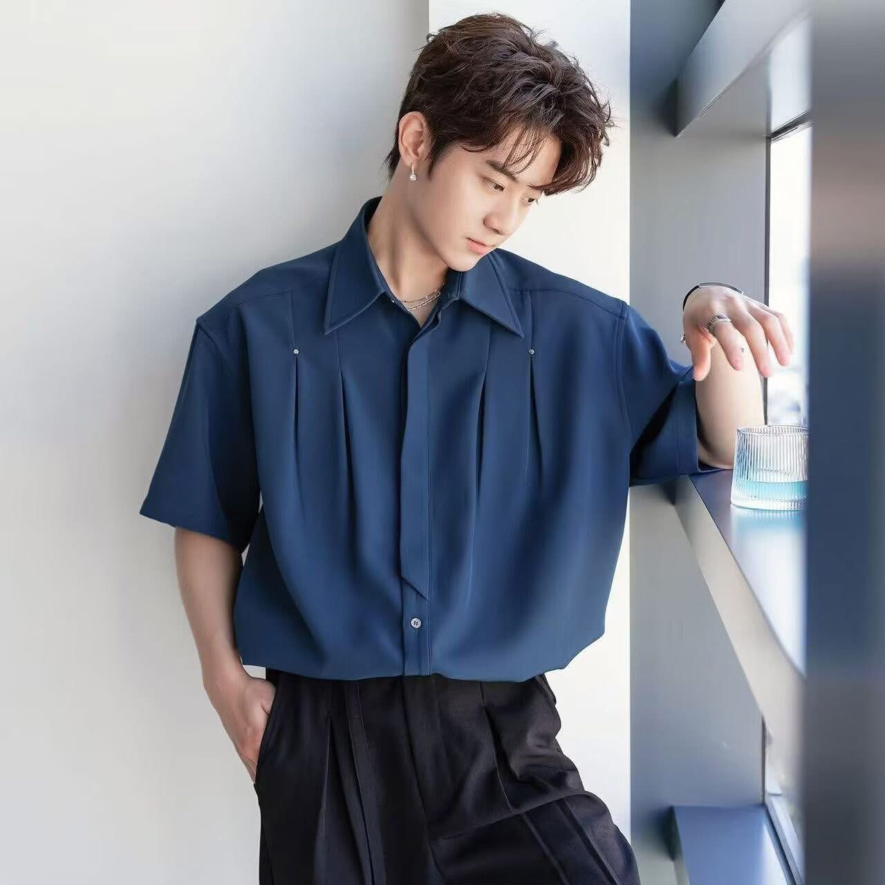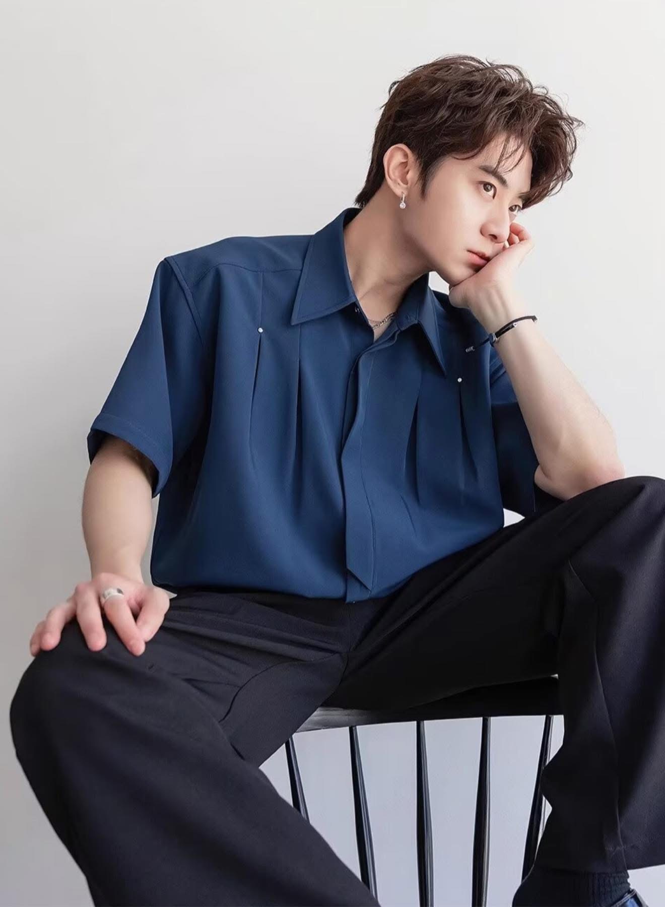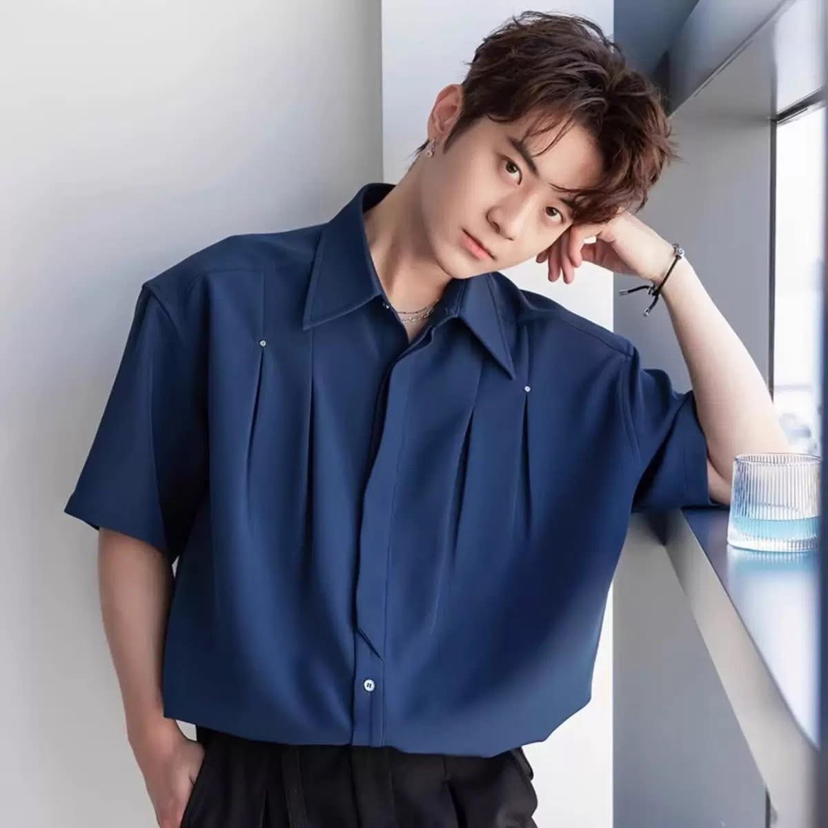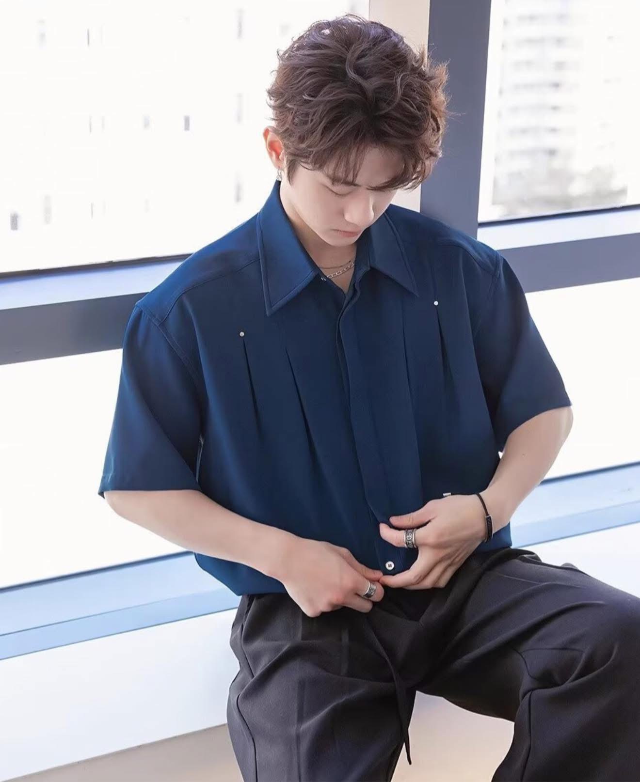 Korean-style minimal short-sleeve shirt