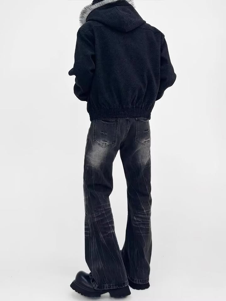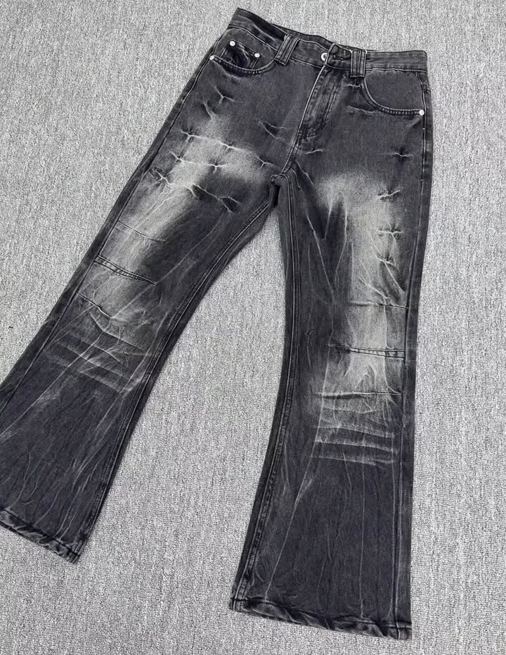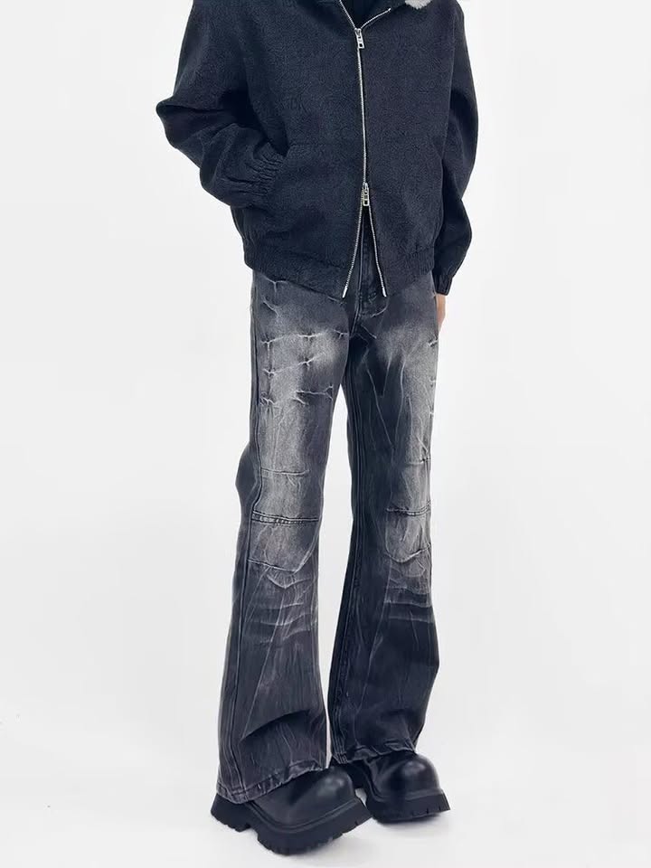 Wide relaxed silhouette with textured distress effect —